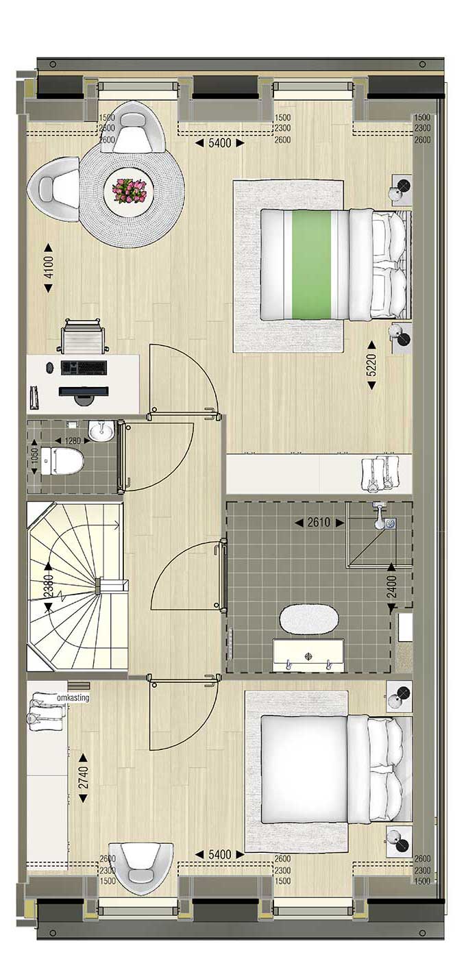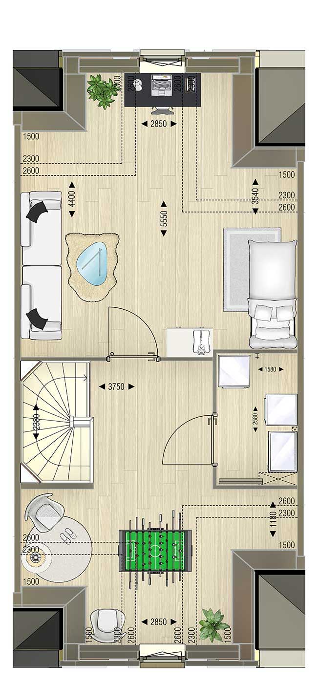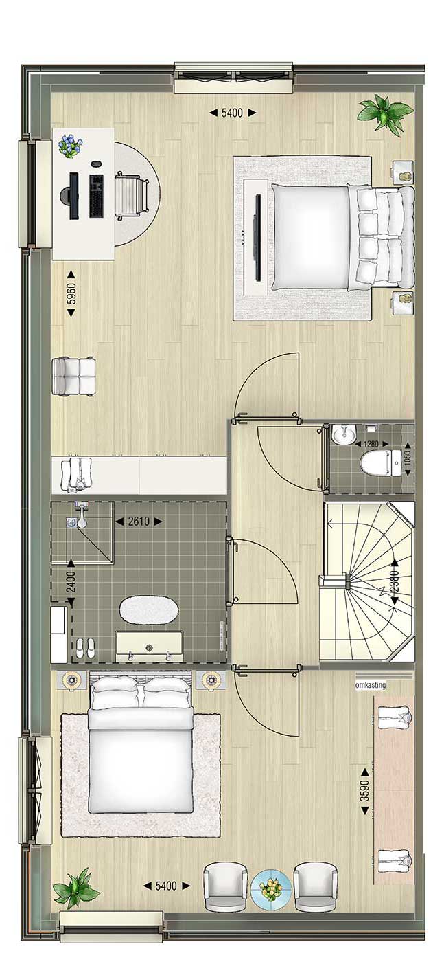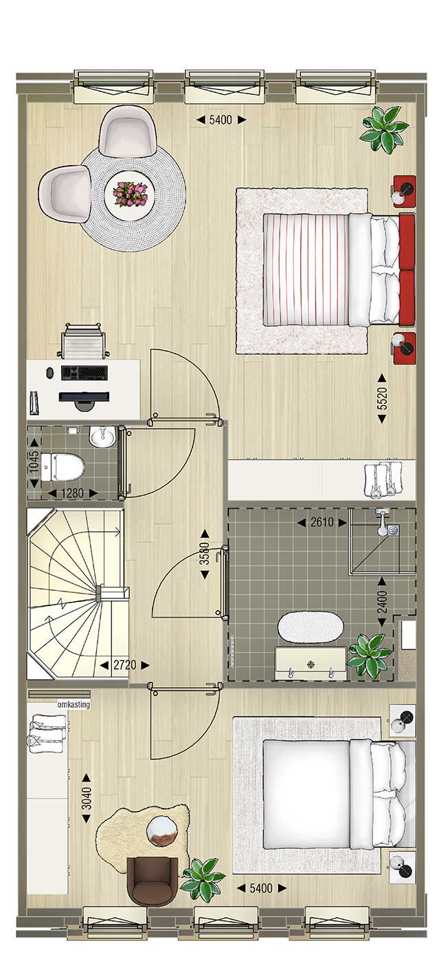 Alle herenhuizen hebben een breedtemaat van 5,7 meter. Met een ruim woonoppervlak variërend van ca. 158-179 m2 is er voldoende ruimte om te grootste slaapkamer logt aan de achterzijde. Daarnaast zijn er nog volop mogelijkheden om dit herenhuis naar wens in te delen: een extra slaapkamers of een kantoor aan huis. Het kan allemaal.