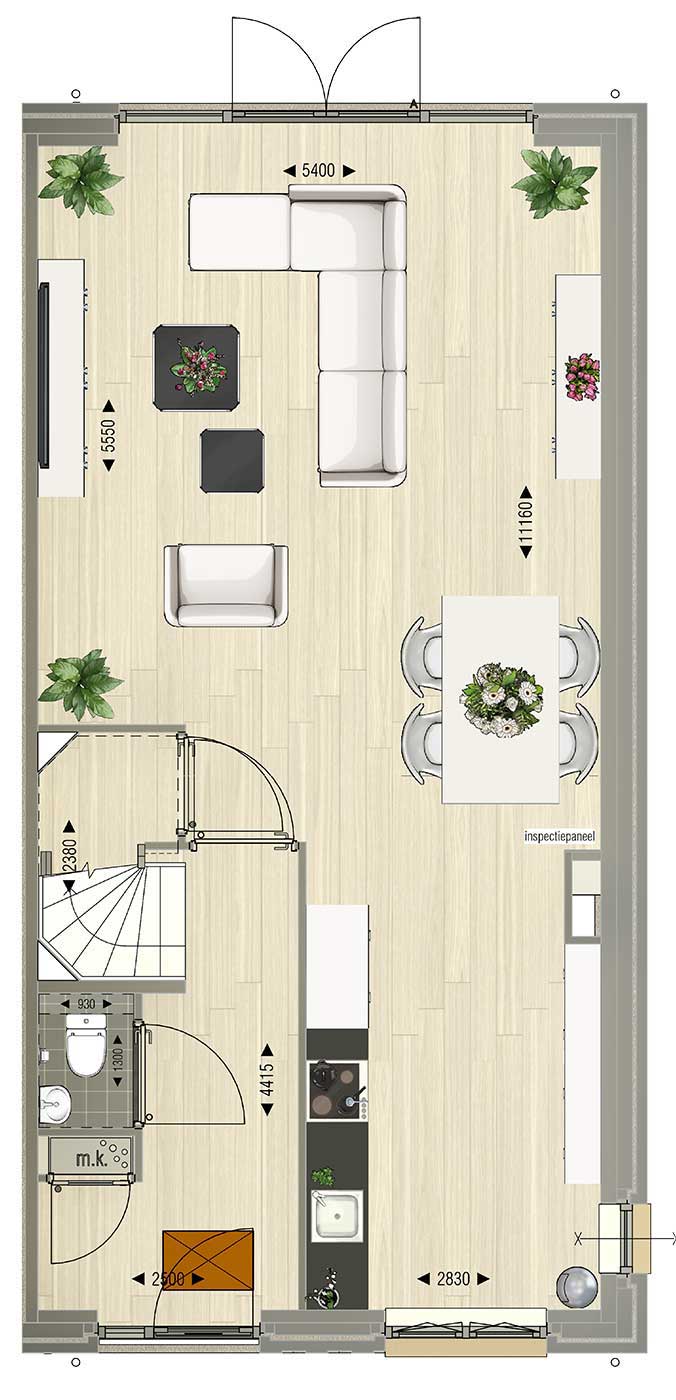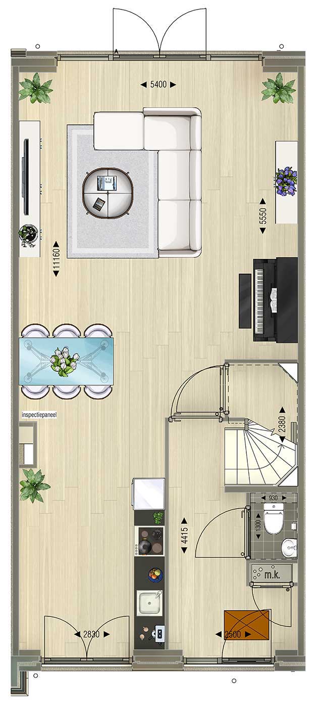 Bouwnummer 2 heeft een dakkapel aan de achterzijde. Naast meer ruimte en meer lichtinval geeft dit ook een bijzondere uitstraling aan de woning. Bouwnummer 3 heeft een tijdloze uitstraling en een vergelijkbare volume als de schuurwoning, alleen uitgevoerd in hoogwaardig metselwerk. Bouwnummer 4 sluit als hoekwoning deze rij van statige herenhuizen. Welke variant heeft u voorkeur? Gaat u voor een hoek- of tussenwoning?