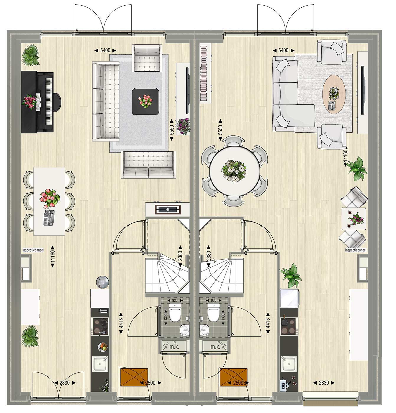 De woningen hebben een eigentijds karakter met elk een unieke uitstraling. Bouwnummer 5 is voorzien van een klassieke mansardekap. Bouwnummer 6 heeft een mooie tuitgevel, die niet alleen mooi oogt, maar daardoor ook iets ruimer is. Welke u ook kiest, de woningen zijn met zorg ontworpen en bieden een perfecte balans tussen stijl en functionaliteit. Deze twee- onder- een- kapwoningen hebben een kaveloppervlakte vanaf ca. 118-123 m2.